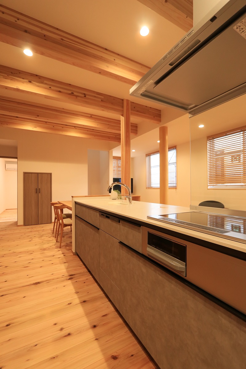 天井の梁表しや造作家具も相まって、グッとしまり、高級感のあるLDKとなっています。