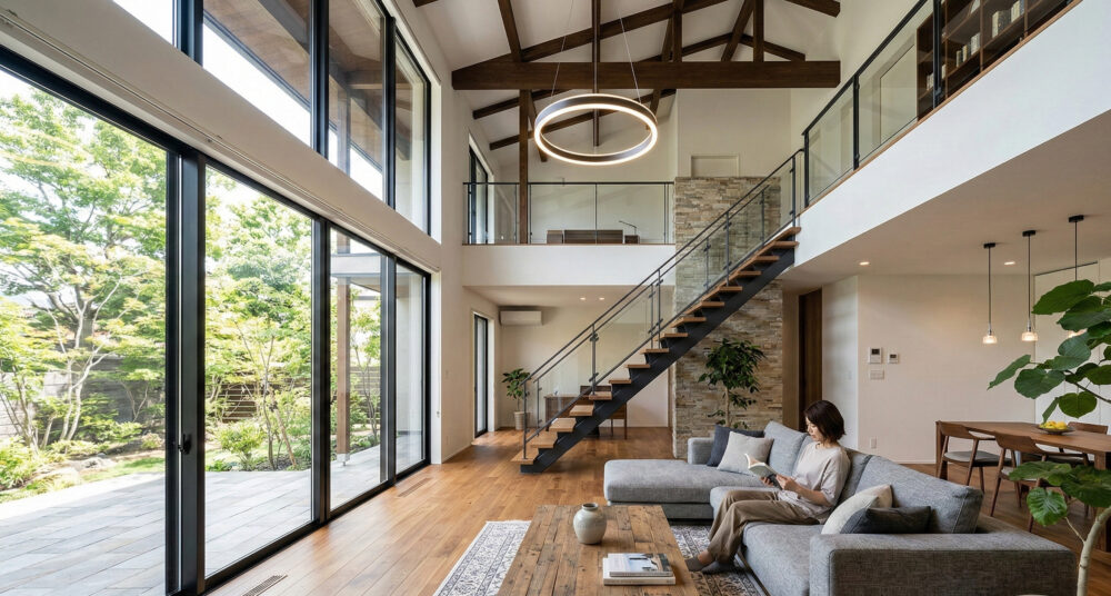 新潟の厳しい冬において、吹き抜けを快適にするには、単なる断熱材の厚みだけでなく、全館空調レベルの緻密な空気の循環計画が必須です。