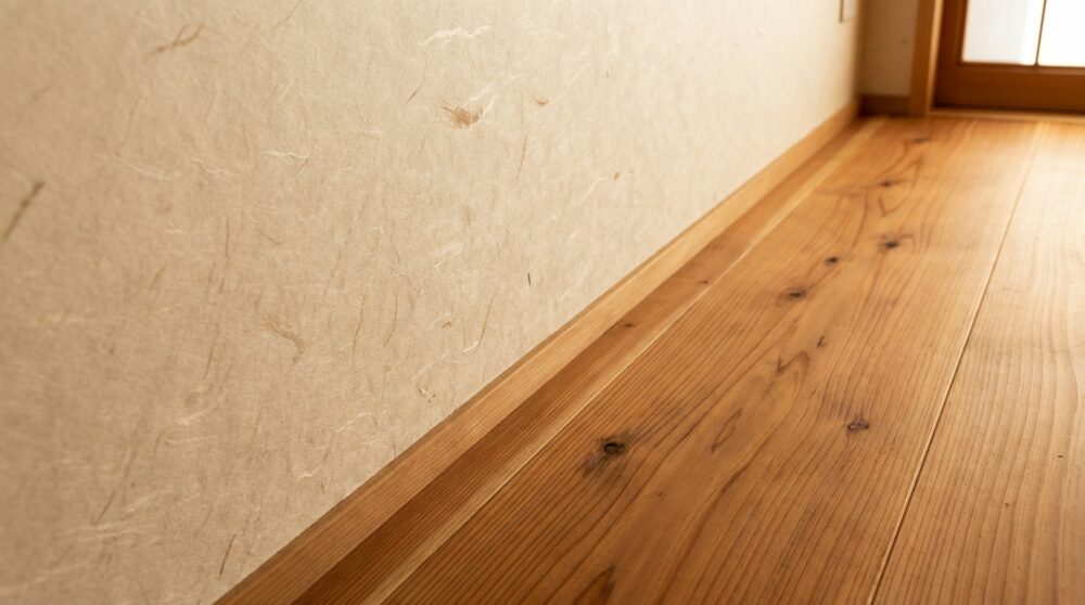 私たちが普段手掛けている家づくりでは、杉の無垢床や、越前和紙の壁紙といった自然素材を標準採用しています。